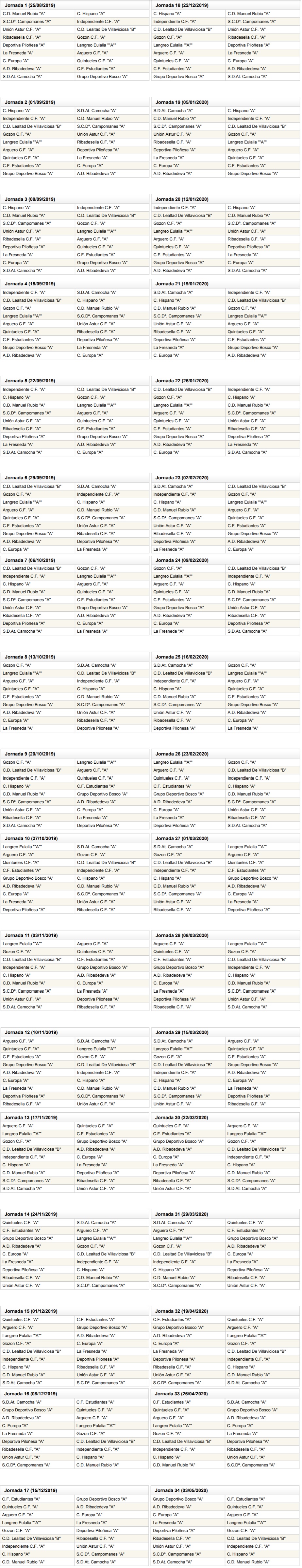 Calendario de Primera Regional - Grupo 1º - 2019-20