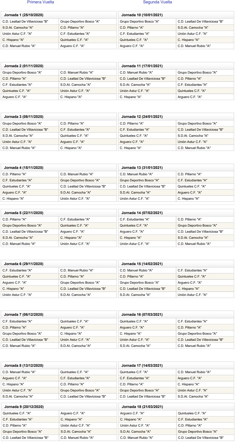 Calendario de Primera Regional - Grupo 1 - 2020-21