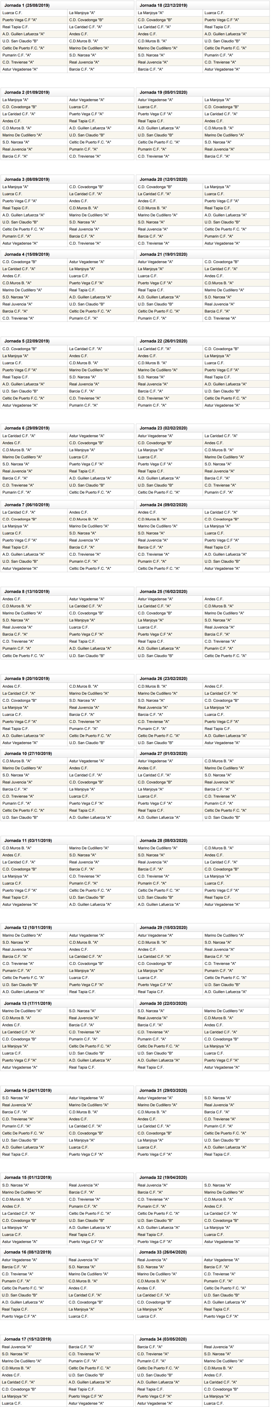 Calendario de Primera Regional - Grupo 2º - 2019-20