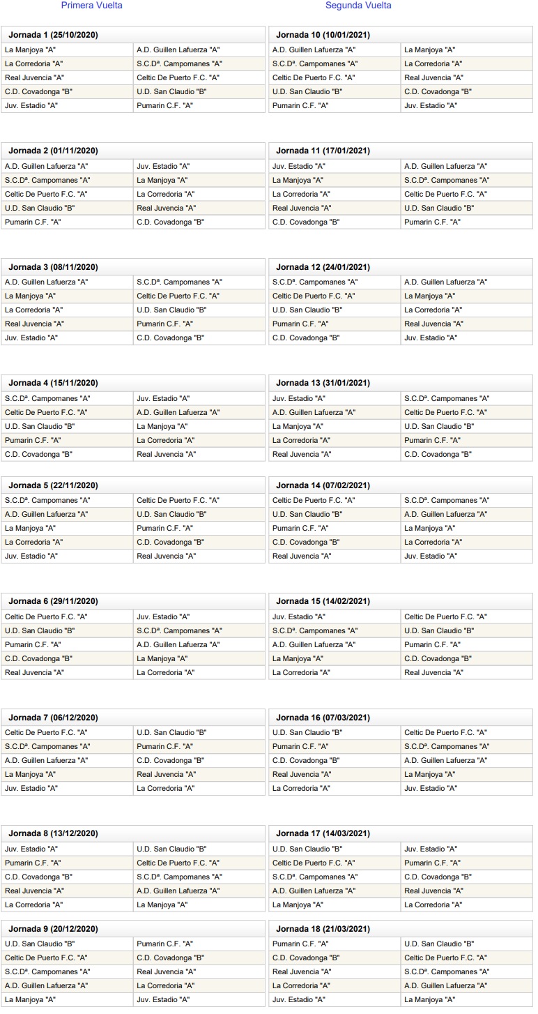 Calendario de Primera Regional - Grupo 2 - 2020-21