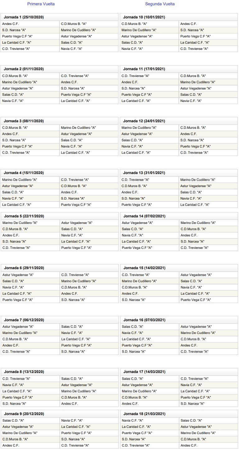 Calendario de Primera Regional - Grupo 3 - 2020-21