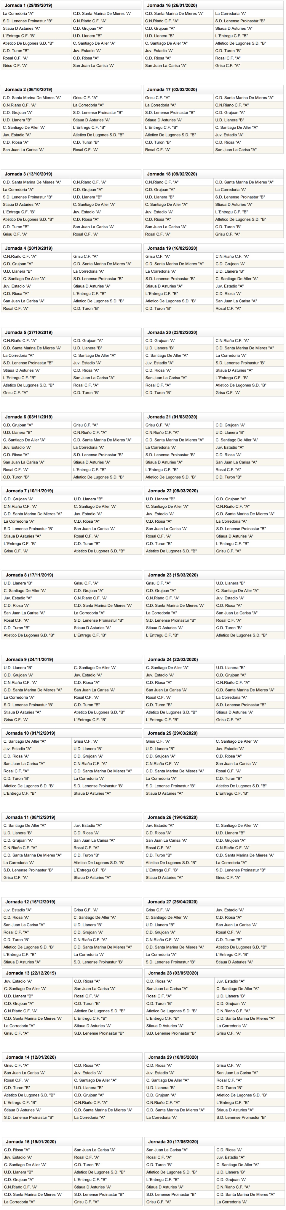 Calendario de Segunda Regional - Grupo 2º - 2019-20