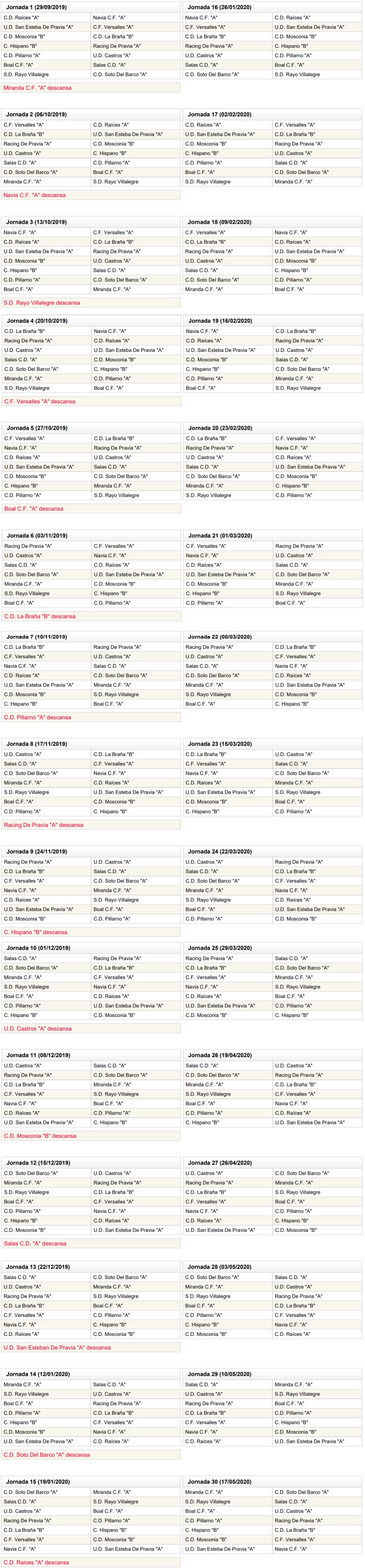 Calendario de Segunda Regional - Grupo 3º - 2019-20