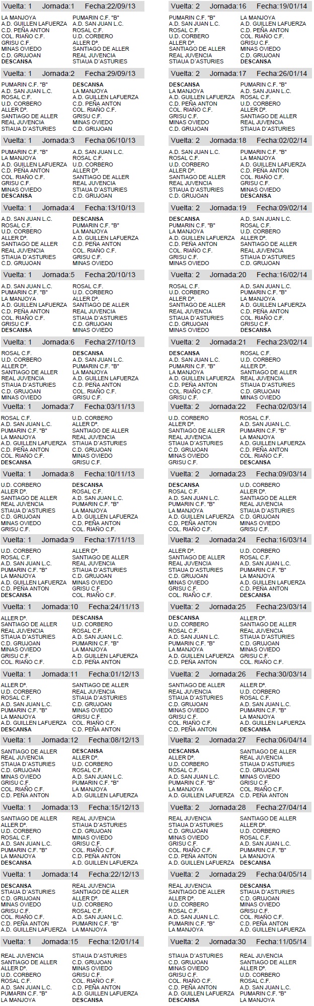 Calendario de Segunda Regional - Grupo 2º - 2013-14