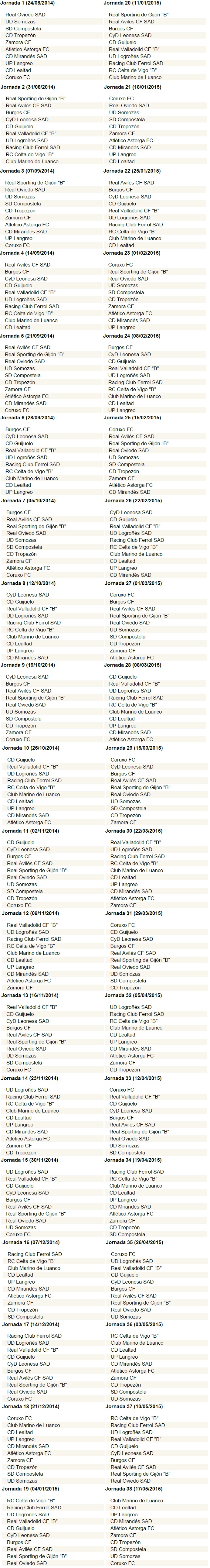 Calendario de Segunda B - Grupo 1º - 2014-15
