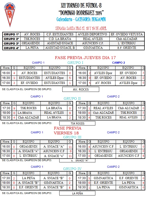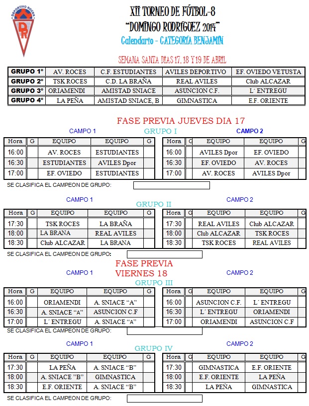 misma hora. Todos los partidos se disputarán en el Campo Nº 1 de