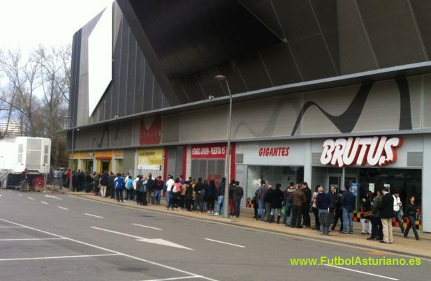 Esta mañana se ponían a la venta las últimas 450 entradas en las taquillas de El Molinón, donde hicieron noche dos decenas de aficionados. Las colas daban la vuelta al Molinón y más de un centenar de personas se quedaron sin entradas.