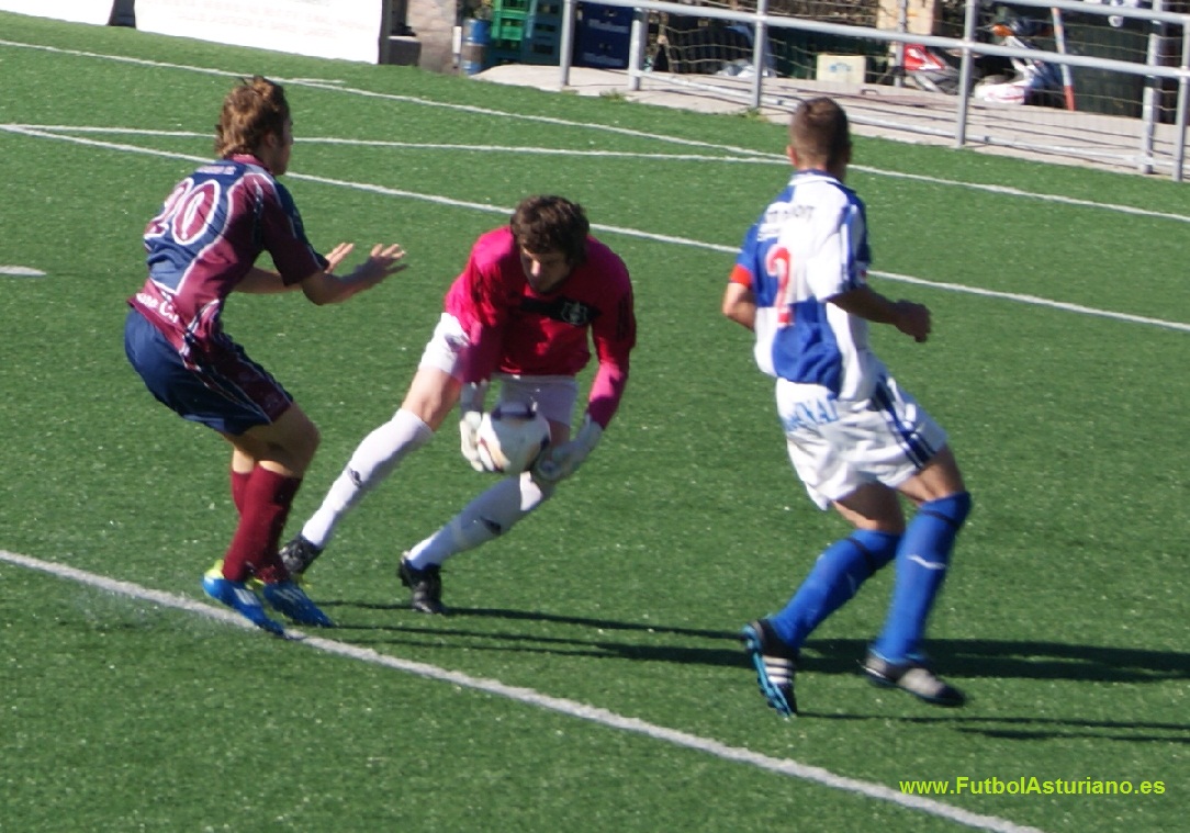 Partido en El Candín que merced a la diferencia en la clasificación y que el Navarro llevaba sin ganar en este feudo desde la temporada 99-00 parecía que iba a ser fácil para el C.D.Tuilla, pero no fue así. El Tuilla comenzó intentando tener el dominio del balón, tocar y jugar por banda a diferencia de otras temporadas y no abusar del pelotazo a los delanteros, pero enfrente se encontró con un Navarro necesitado de puntos para salir de la parte de abajo de la tabla y que le quiso jugar con una defensa contundente y una presión asfixiante que por momentos maniató al Tuilla. En esta primera mitad cabe destacar un disparo desde fuera del área del Navarro que hace estirarse y despejar a Adrian y por parte del Tuilla la jugada que a la postre seria la jugada del partido, saque de banda que ejecuta Omar que coge despistada a la defensa del Navarro y 2 defensas se hacen un lío y éste lo aprovecha Mini en el min. 45 para batir la portería de Dani Castro. En la segunda mitad más de lo mismo, el Tuilla sale a controlar el partido y el Navarro a seguir presionando para robar rápido y salir a la contra. En este periodo cabe destacar otro disparo del Navarro desde fuera del área en el que Adrián envía fuera en una espectacular parada en la que los espectadores ya cantaban gol y un par de acciones del Tuilla, la primera un disparo de Mini dentro del área que despeja Dani Castro y la segunda una acción personal de Yoni que es derribado dentro del área señalando el arbitro la pena máxima, el penalti lo tira el mismo Yoni y detiene Dani Castro adivinando el lanzamiento del balón que despeja y el balón la cae otra vez a Yoni que esta vez de cabeza no logra batir a Dani Castro. De aqui al final el Navarro se creció y intento empatar el partido pero sin ninguna acción que destacar. Al final resultado favorable para el Tuilla que no jugó su mejor partido y sigue 2º en la clasificación. Fotos: |