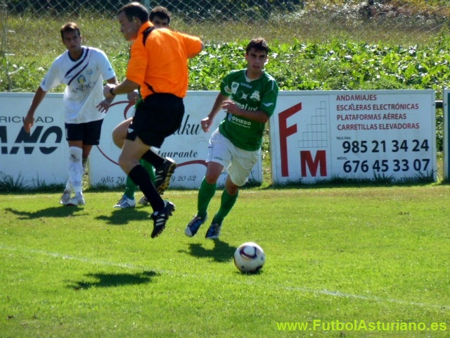 Encuentro muy reñido en el centro del campo por ambos conjuntos, si bien el Cudillero intentaba poner un poco más de criterio a la hora de jugar el balón, aunque sin mucha precisión. Los locales quizá abusaban de los balones largos a los atacantes Carly y Piñera, y especialmente, a Cuartas. En los primeros minutos se lesionó el central Iván Miranda, siendo sustituido por el medio Gabino, retrasando su posición Llerandi para ocupar la posición de central. La primera ocasión clara de gol llegaría a los 12 minutos por medio de un remate cabeza de Napo tras un buen centro de Uve desde la banda izquierda, pero se va por encima de la portería. En el ecuador de esta primera parte Gabi realizó un potente disparo desde la frontal del área a la salida de un saque de esquina, pero Edu atajaría bien en dos tiempos. Antes de llegar al descanso el Colloto tuvo su oportunidad de ponerse por delante con un remate de cabeza de Toño y posteriormente un balonazo de Igor, pero se encontraron primero con una buena estirada de Gabri abajo, y el segundo con los centrales pixuetos que despejaron a banda. En el segundo periodo el Cudillero salió mucho más entonado, combinando con más solvencia, aunque seguía sin llevar peligro sobre el área local, salvo alguna acción aislada. Pero llegaría el minuto 54 y el innecesario penalty que Igor cometería sobre Robert. La pena máxima la convertiría Uve, completando de esta manera un gran partido, engañando a Edu en su disparo. Tras el gol, el Colloto se descompuso en cierta manera, y los de Cudillero pudieron ampliar la ventaja tras una internada del lateral derecho Edu que llega a la línea de fondo y pone el balón atrás para Jose Luis, pero su disparo se va alto.