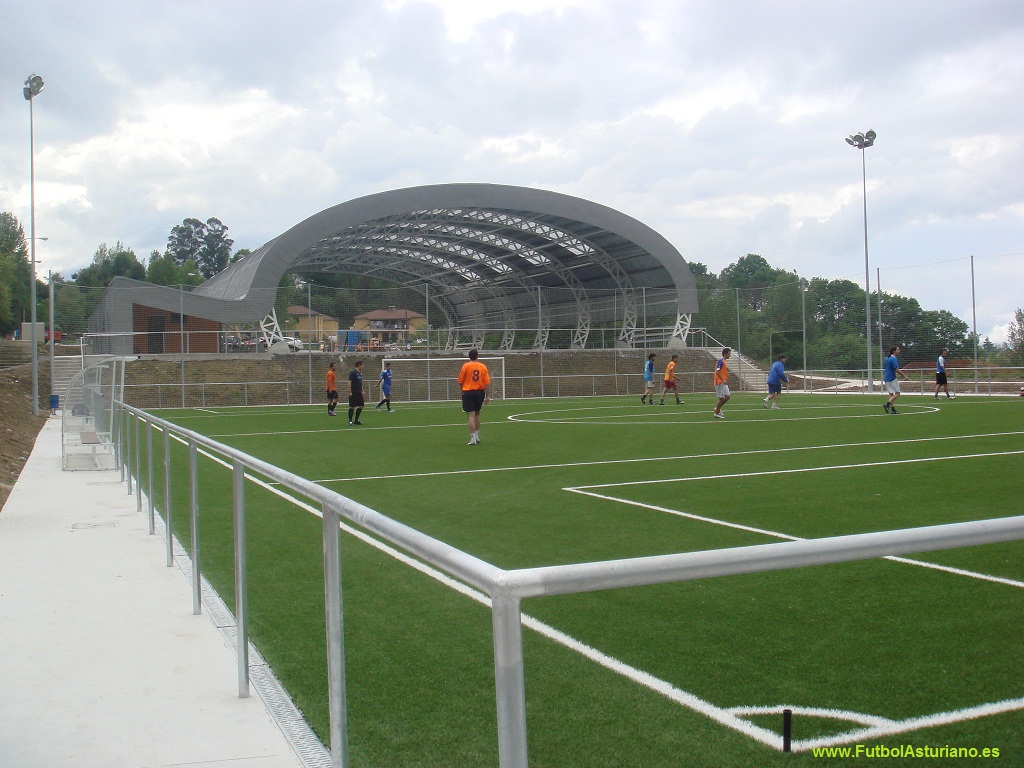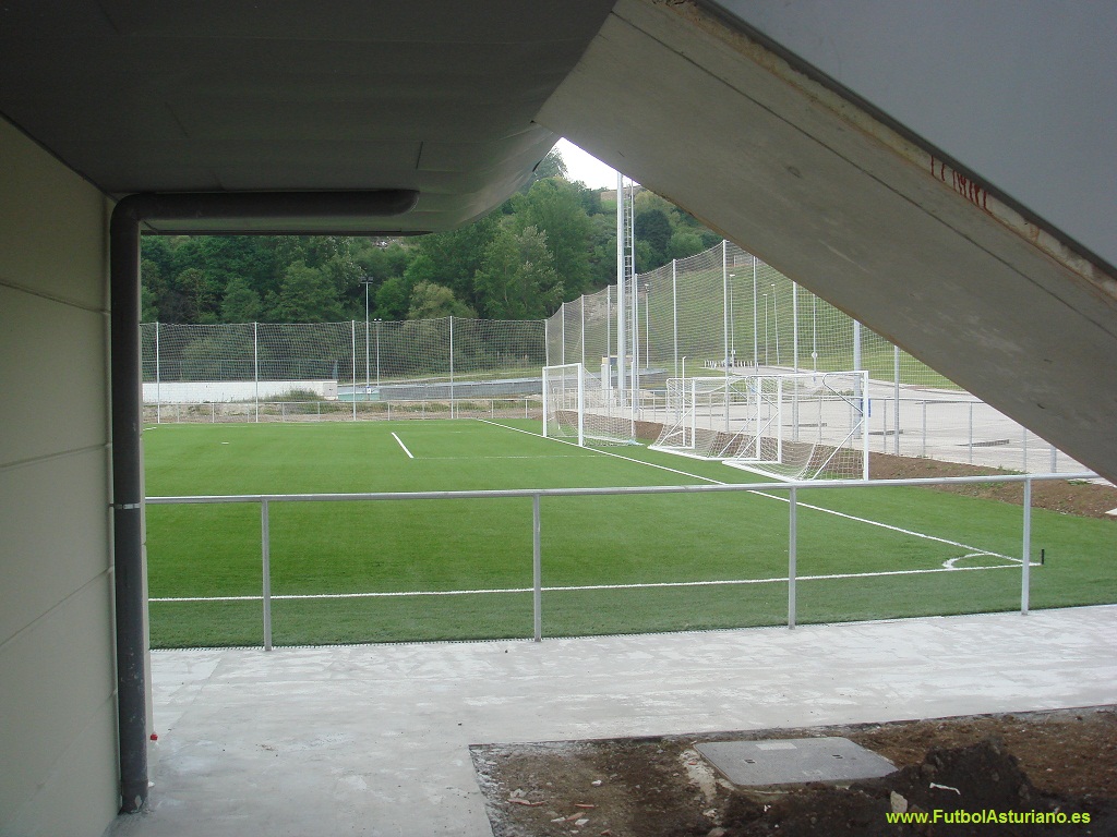 La concesión cayó en la empresa Gestión de Obras, Excavaciones y Servicios (GOES), que comenzó las obras en junio de 2010 y con fin previsto para diciembre, estamos con 5 meses de retraso. Las instalaciones incluyen: - 2 campos de fútbol de 100x60 m. divididos por una grada de casi 300 localidades a cada lado y con 4 vestuarios para equipos, 2 para árbitros y gimnasio en la planta baja. - 2 campos de fútbol 8, 4 vestuarios para equipos y 2 vestuarios de árbitros. - 1 pista cubierta de fútbol sala - Rehabilitación del edificio polivalente, que consta de bar, almacén y vivienda del guarda y que se convertirá en bar, oficinas del club y se mantendrá la vivienda del guarda. - Amplio aparcamiento repartido en dos zonas.