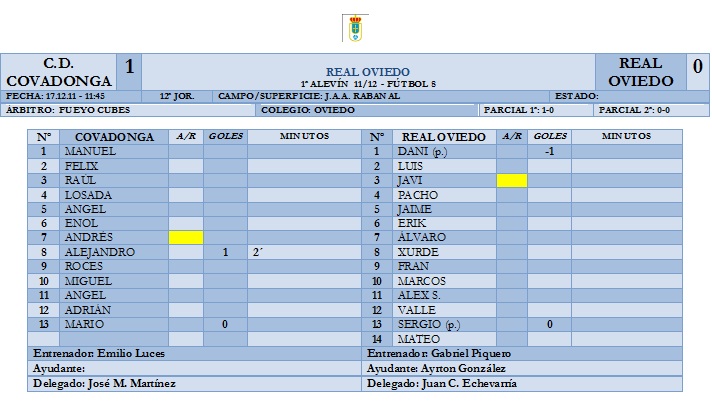 Árbitro: | Vigo López. Delegación de Avilés. (2) | ||||||||||||
