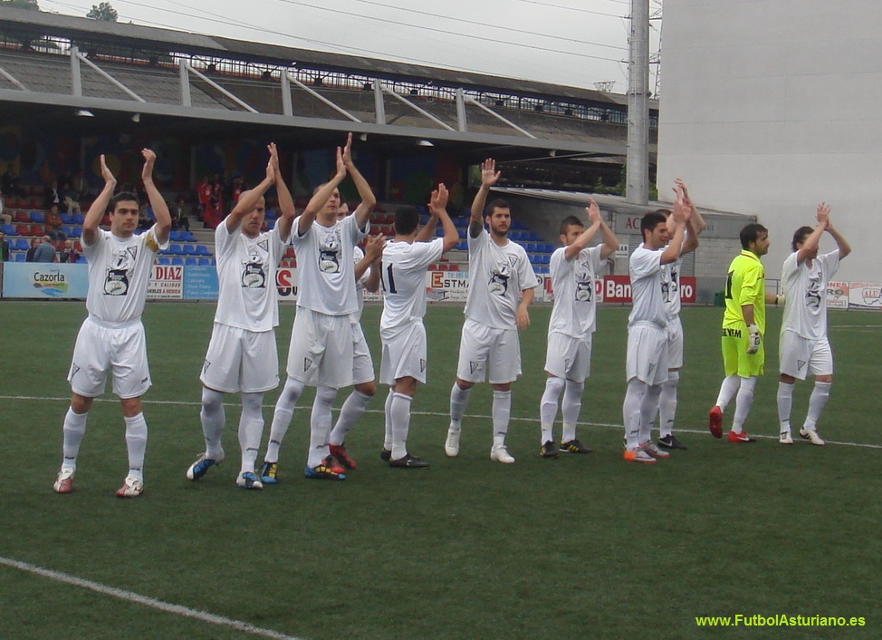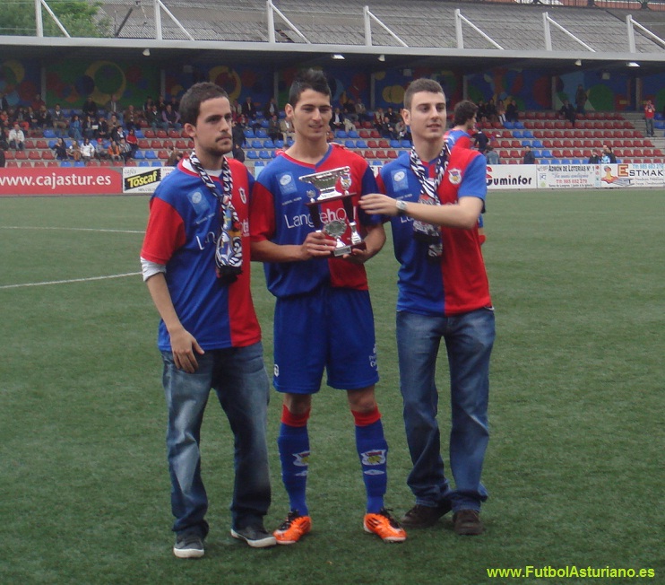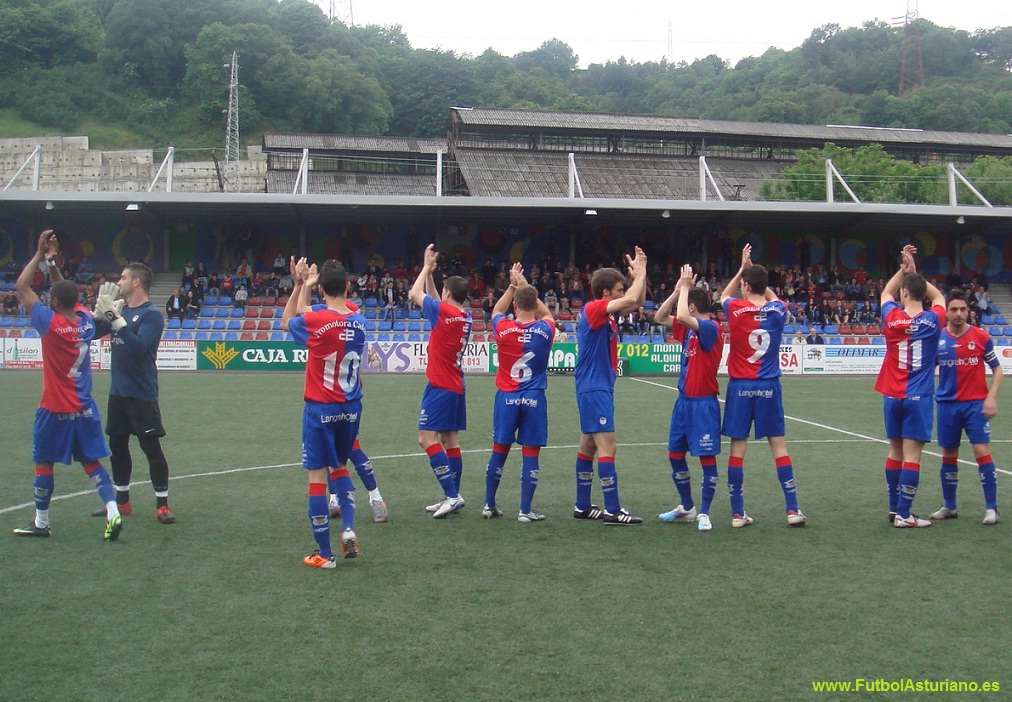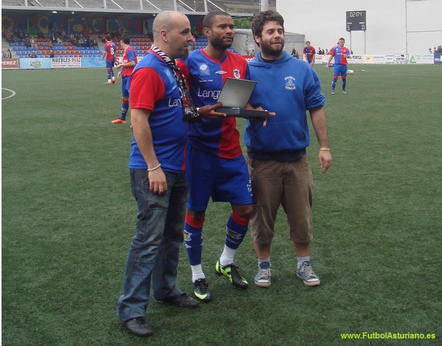 crónica: El Langreo no merece seguir en Tercera... Una historia, un gran estadio y una gran afición, más de 2000 personas en Ganzábal, a pesar de que la megafonía dijo en primera instancia 1365 y unos minutos después 1665. Sorprendió la salida de los dos equipos juntos al campo, algo que está haciendo olvidar tradiciones de abuchear y silbar al equipo visitante y ovacionar al local, el dichoso fair play está haciéndonos perder momentos del fútbol de siempre. La tarde comenzó con la entrega por parte de los premios de la afición -los votos se recogieron a la entrada al estadio en el último partido como locales-, miembros de Dixebra Popular entregaban los premios al jugador más regular: Abraham, al máximo goleador: Diego Arias y al más querido por la afición: Kily. Sobre el campo, como comenta Pablo, un partido que no respondió a las expectativas, demasiado táctico y con pocas ocasiones, a pesar de que su afición estuvo apoyando al equipo durante todo el partido, al igual que hará el domingo en La Roda, donde a buen seguro que al menos un centenar de langreanos se darán cita. La resolución la tendremos el domingo a las 18.00 h. Allí estará www.FutbolAsturiano.es para contarlo. Fotos: |