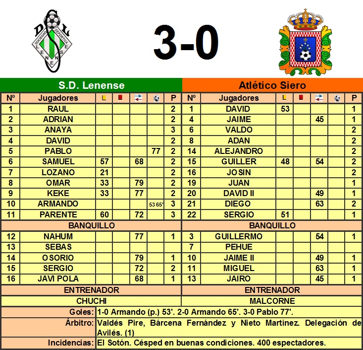 En el partido disputado en la tarde de ayer en El Sotón, el conjunto local no sólo aguantó la renta de dos goles conseguida en campo contrario, sino que amplió el global de la eliminatoria hasta un contundente e inapelable 5-0. El equipo dirigido por Malcorne, fiel a su estilo, intentó un juego combinativo y vistoso para el espectador, adoleciendo de pegada arriba y mostrándose muy flojos en defensa. Por su parte el Lenense, con una notable superioridad física, llegó con mucha asiduidad a la meta rival, y sus viejos rockeros, Parente y Armando, marcan las diferencias, debiendo mejorar los chicos de Chuchi en algunas lagunas defensivas