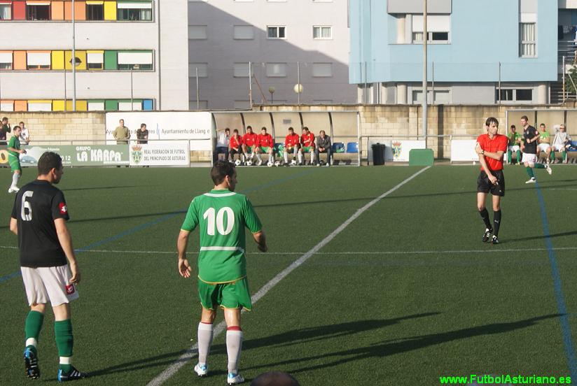Gran partido de ida de la última ronda de play off por ascender a Regional Preferente, disputado en la tarde de ayer en Lada, con un gran ambiente en las gradas, y una lluvia torrencial durante la primera parte que cogió por sorpresa a los allí presentes. El encuentro tuvo tres fases bien diferenciadas, una primera media hora de dominio local, adelantándose en el marcador aprovechando la estrategia, un último cuarto de hora de la primera ronda, con un Lenense que arrolló al Lada-Langreo, volteando el marcador, y una segunda parte de mayor dominio y ocasiones para los locales, con un Lenense bien armado en defensa, a quien acompañó la fortuna y una muy discutible decisión arbitral. Salió más incisivo el cuadro langreano, que con un fútbol rápido y combinativo llegaba con asiduidad a la meta defendida por Sebas, y antes de cumplirse el minuto diez de juego, el delantero centro local Jony envía un gran disparo que repele el larguero. A continuación, en una nueva acción ofensiva de los locales, el capitán Elio incorporado al ataque, cae en el área, reclama penalty, pero el colegiado, con buen criterio, le muestra cartulina por simular. La primera respuesta de los lenenses, llegaría por medio de un remate de cabeza de Keke que se vá desviado de los dominios del guardameta local Carlos. Y antes de la media hora, una falta lateral y escorada, la bota Saúl Camporro, con la zurda y bate al meta visitante, cobrando los locales ventaja en la eliminatoria. Este gol, lejos de acobardar a los discípulos de Chuchi, espoleó al Lenense, que hasta el descanso desplegó el mejor fútbol de toda la tarde, con llegadas continuas al área rival, liderados por un Anaya muy incisivo y motivado por banda izquierda, y la precisión de Parente en la derecha, jugador que a la postre se convertiría en protagonista del encuentro. En dos minutos frenéticos, el Lenense dio la vuelta al marcador: en primera instancia un balón interior de Parente es aprovechado por el central Piquero, para en el segundo palo establecer la igualada, y posteriormente otra gran asistencia de Parente sirve para que Armando Quesada conecte un buen cabezazo, subiendo el segundo gol al marcador y llevando la alegría a los muchos seguidores desplazados desde Lena. La segunda parte, nos deparó un choque con dos estilos e intereses contrapuestos, un Lada que necesitaba por lo menos igualar la contienda, y un Lenense que se volvió más conservador, por lo que el peso del juego lo llevó el cuadro local, que a los diez minutos de la reanudación igualaba el partido por medio de Jony, que aprovecha un centro por la derecha para de cabeza subir el segundo tanto local al marcador. Poco duró la alegría para los langreanos, pues el Lenense, a los pocos minutos, y en una de sus escasas ocasiones de la segunda tanda, marcaría el último tanto del partido, gol importantísimo, que pone la eliminatoria y el ascenso muy cerca de los intereses del cuadro de Pola de Lena : corner botado por la derecha del ataque, y Pablo incorporado al ataque, en el primer palo conecta un cabezazo que supone el tanto de la victoria, gol celebrado por el defensa con los aficionados de su equipo, emulando su misma celebración hace una semana en el gol que marcó ante el Atlético Siero La última media hora de partido, fue un monólogo de los langreanos, volcados en busca del empate, ante un Lenense que se cerró muy bien, fortaleciendo la zona central del área, lugar en el que las disputas de balones aéreos fue una constante en el tramo final del partido. En el minuto 70, una falta lejana a favor de los locales, la bota Nacho, el balón no lo toca ningún jugador local, golpea aparentemente en un defensa visitante, e inexplicablemente el colegiado anula el tanto, ante la incredulidad de público y jugadores locales, pudiendo interpretar el señor Corujo Morán que el central Piquero no entró en contacto con el esférico. El Lada- Langreo lo siguió intentado, y a falta de cinco minutos para el tiempo reglamentado, Nacho envía un balón al larguero, acabando aquí las esperanzas locales de conseguir al menos un empate. Felicitar a los dos equipos por el gran partido que nos brindaron, lleno de intensidad, emoción e incertidumbre en el marcador, con un Lenense que supo aprovechar muy bien sus ocasiones, y un Lada que dio la cara en todo momento, haciéndose acreedor a un marcador más favorable. Apasionante se presenta el partido definitivo que el próximo domingo se disputará en el Sotón, de donde saldrá un nuevo equipo de Regional Preferente. |