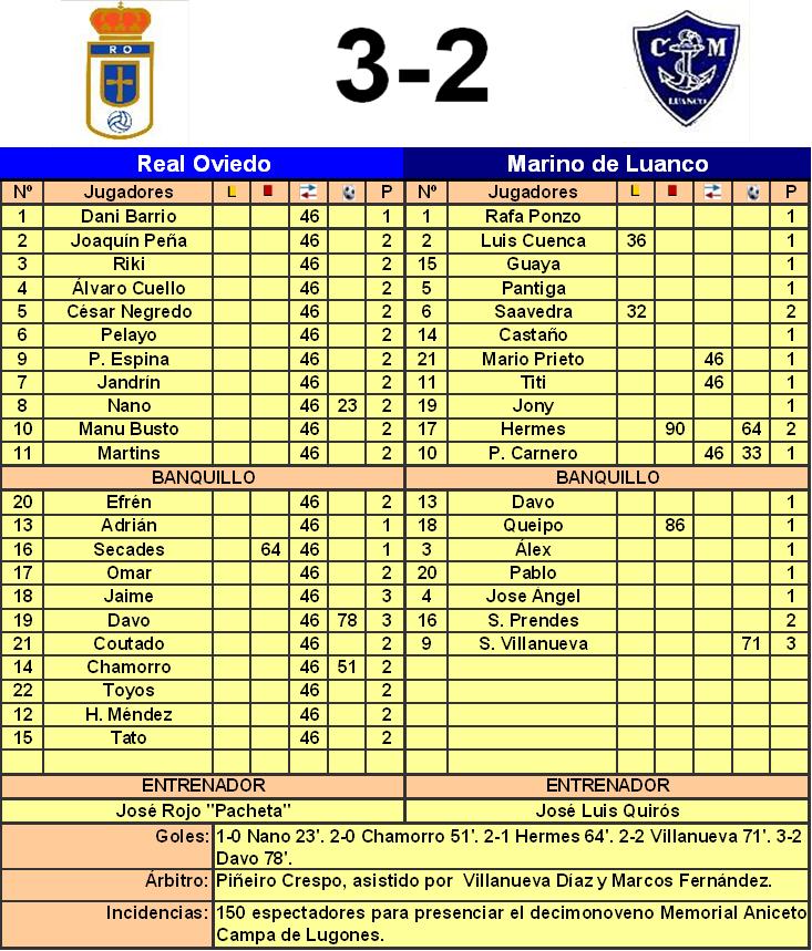 para el Real Oviedo en el partido disputado con