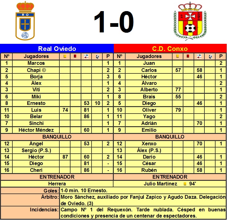 Herrera tenía la importante baja de Adán, que fue cubierta por Marcos, portero que teóricamente jugará en el equipo de Liga Nacional esta temporada. Los azules salieron más metidos en el partido desde el principio, aunque sin trasladar el dominio en ocasiones, el primer disparo entre los tres palos acabó en gol. Un pase de cara en la frontal del área para Ernesto, lo envía con rosca, disparando con el interior, a las mallas de la meta defendida por Juan. El partido fue muy igualado y la próxima ocasión clara llegó en el 43', con una internada por banda de Chapi, en la que que fue desequilibrado en el perímetro del área y posteriormente derribado dentro, señalando Moro Sánchez la primera falta tras haber decretado la ley de la ventaja. Los gallegos no intimidaron la meta defendida por Marcos en toda la primera mitad.