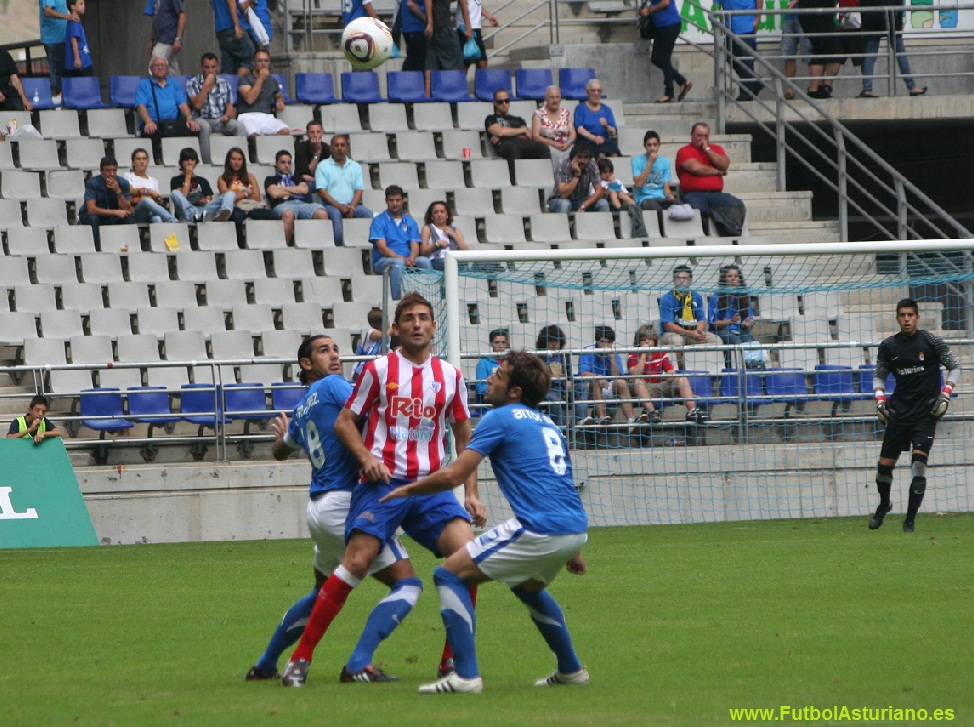 Los lucenses llegaban con ánimo de revancha y desde el principio se notó, a la hora de saltar al campo se situaron ocupando el terreno de juego habitual de los azules, a pesar de las indicaciones de Ricardo Gil para que lo abandonasen. La derrota en el Emma Cuervo y sobre todo la de Copa del Rey escocieron en el seno lucense. Los dos equipos salieron con las ideas claras, el Lugo de intentar hacer juego combinativo y el Oviedo haciendo una presión a partir de la zona de 3/4 y con la defensa muy adelantada. El resultado fue muy pobre, una primera mitad muy trabada, sin ocasiones claras para los equipos y con un Lugo que llevaba el peso del partido, con tranquilidad y esperando su oportunidad. Muy pronto el Oviedo quemó dos de sus tres cambios, las lesiones de Miguel Falcón, al que se le diagnostica una distensión del adductor, por lo que se perderá 2-4 semanas y la de Rubiato, con un esguince en el ligamento lateral interno de la rodilla. Dos bajas importantes, sobre todo la del delantero, que se encontraba en estado de gracia con el gol. En el 41' llegó la oportunidad del Lugo, un penalti de Pelayo lo transformaba bien Manu abajo a su derecha. Tras el descanso el Oviedo intentó igualar el marcador, pero los de Pacheta eran incapaces de dar dos pases seguidos, y el juego directo era muy fácil para la defensa lucense. Xavi Moré fue el más participativo de los azules, tiró del carro, pero no tenía acompañantes, ni Óscar Martínez, ni Manu Busto tenían el día. Con la entrada de Abasolo el dibujo del Oviedo perdió equilibrio, lo único claro fue que Manu Busto retrasó su posición al doble pivote con Aitor Sanz para ser el organizador, bajando muy atrás a recibir el balón. En el 76' Xavi Moré daba el primer aviso cabeceando un córner al lateral de la red en el primer palo, y la respuesta la ponía Monti en el 81', que pudo sentenciar el partido en un error defensivo, en el que el atacante se plantó ante la salida de Dani Barrio y tiró desde 30 metros, pero el mal estado del área del fondo sur ralentizó su disparo y dio tiempo a que Dani Barrio salvase en línea de gol. Cuando peor estaba jugando el Oviedo, y con pitos desde la grada, llegó el empate. Un centro de Manu Busto lo cabecea Xavi Moré a la red, levantando al Tartiere y haciéndolo rugir... aunque por poco tiempo. El Lugo paró el partido unos minutos por miedo a un posible alzamiento oviedista... pero con dos minutos sobre el añadido, un centro de Manu lo cabecea Monti sólo, su remate bota en el área pequeña y el mal estado del césped le juega una mala pasada a Dani Barrio. Preocupante situación del Real Oviedo, que repite su mal comienzo de la pasada temporada y cierra la clasificación con un punto junto al Vecindario y Celta "B". El jueves a las 13.00 h. será el sorteo de la Tercera Ronda de Copa, donde los de Pacheta tienen la posibilidad de quedar exentos, sólo uno de los ocho supervivientes de Segunda B ocupará esa plaza. El próximo partido, el domingo a las 12.00 h. en el Cerro del Espino ante el Atlético de Madrid "B", el filial nada en mitad de la tabla con 4 puntos. Fotos: Ver álbum de fotos |