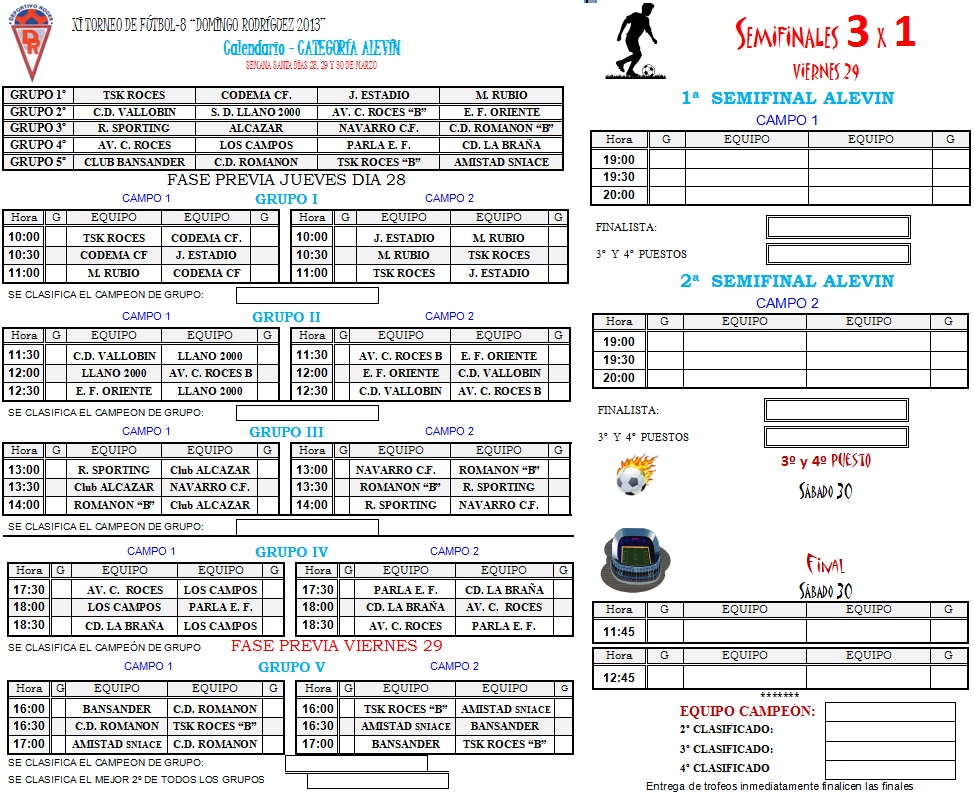 El TSK Roces organiza la undécima edición del Torneo Domingo Rodríguez en las categorías alevín y benjamín de Fútbol-8.
