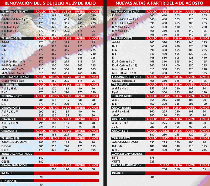 - SUB 30: De 26 a 29 años (solo grada de animación)