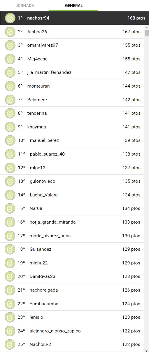 primera jornada- con 168 puntos, seguido por Ainhoa26