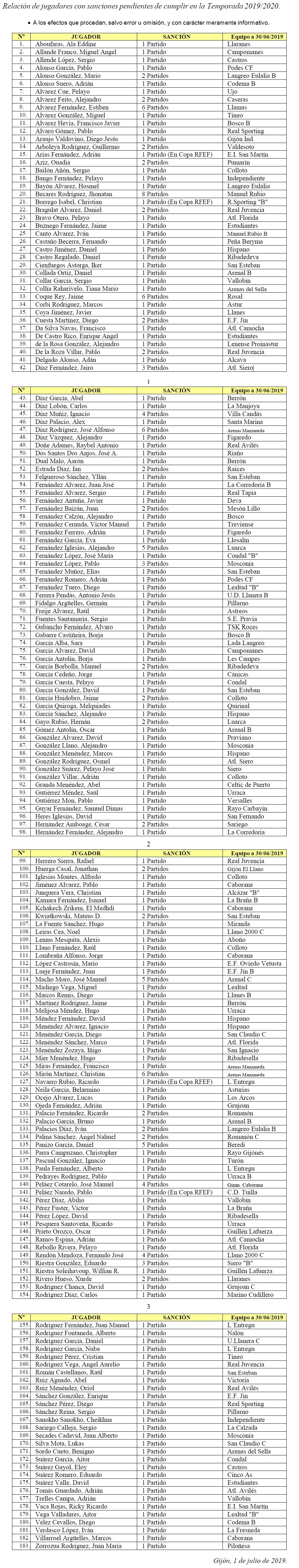 La RFFPA publicó las sanciones pendientes de cumplir para la temporada 2019-20, que comienza en el día de hoy.